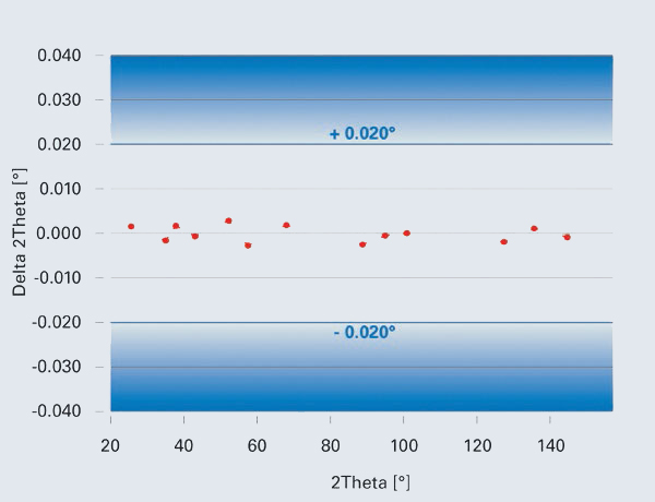 角度精度 | 在整個(gè)測量范圍內(nèi),峰值位置精度均優(yōu)于0.02°2Theta,可通過隨附的剛玉參考證書進(jìn)行追蹤 | |
