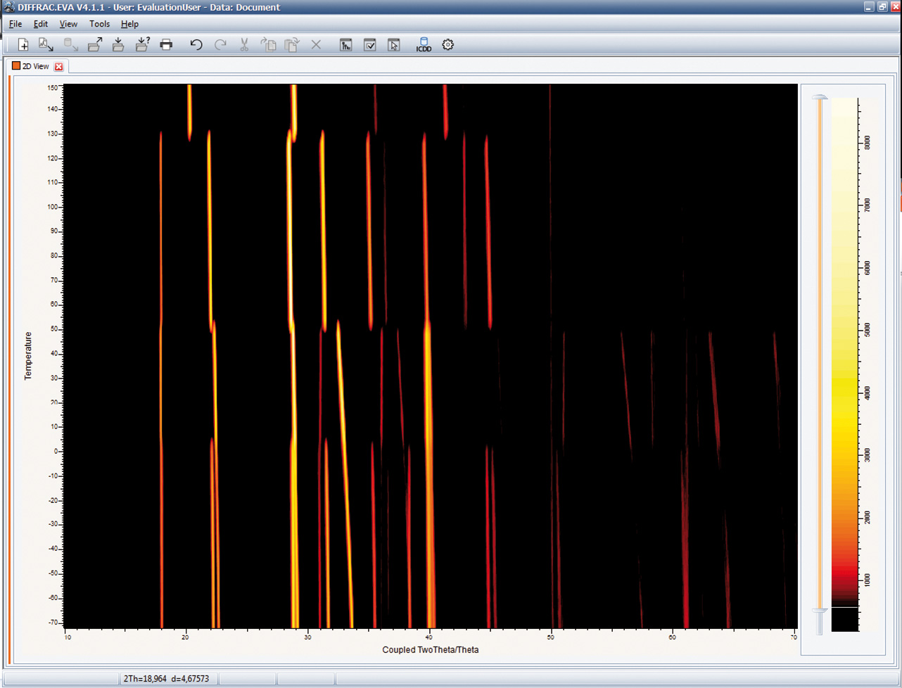 3)可以在DIFFRAC.WIZARD中配置溫度曲線并將其與測量同步,然后可以在DIFFRAC.EVA中顯示結果。