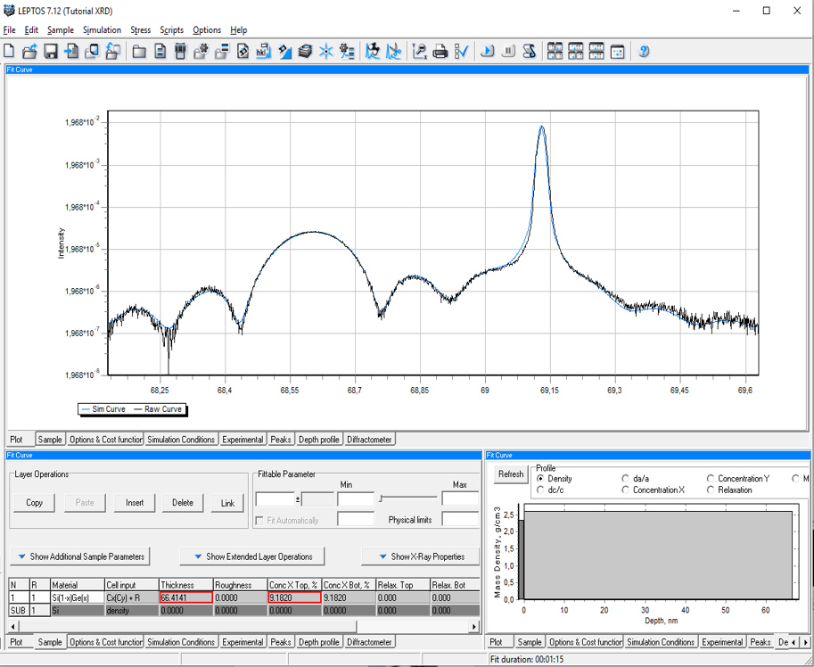10)在DIFFRAC.LEPTOS中,對(duì)多層樣品進(jìn)行XRR分析,測(cè)定其薄膜厚度、晶格失配和混合晶體濃度。