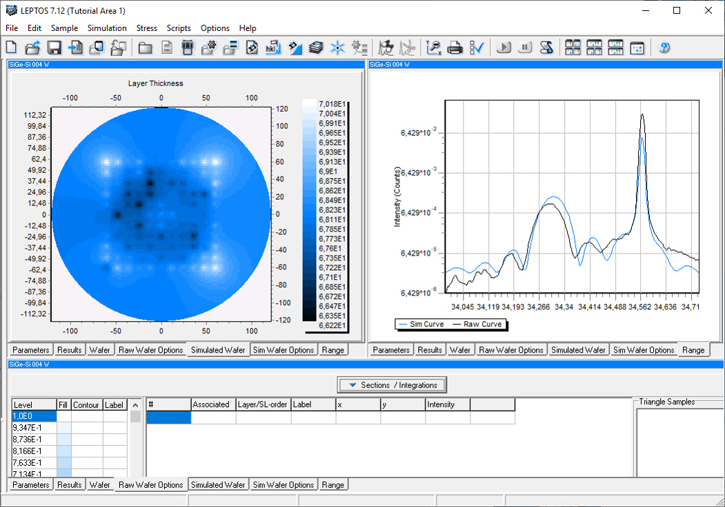 11)在DIFFRAC.LEPTOS中,進(jìn)行晶片分析:分析晶片的層厚度和外延層濃度的均勻性。