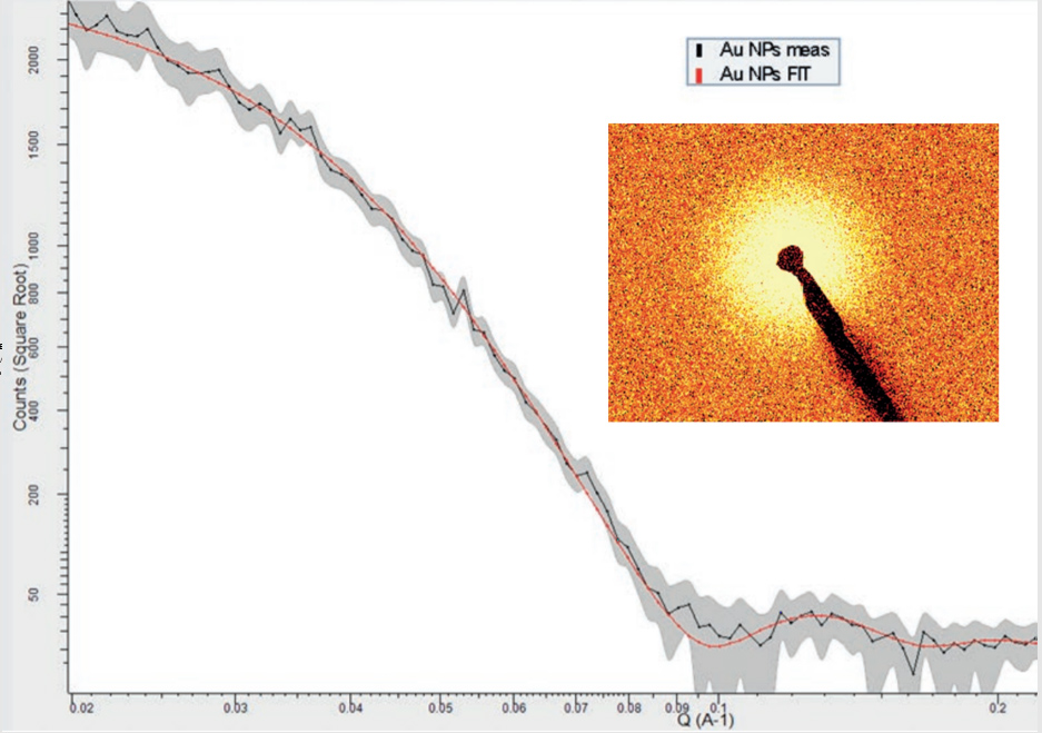 6)在DIFFRAC.SAXS中,對(duì)EIGER2 R 500K通過(guò)2D模式收集的NIST SRM 8011 9nm金納米顆粒進(jìn)行粒度分析。