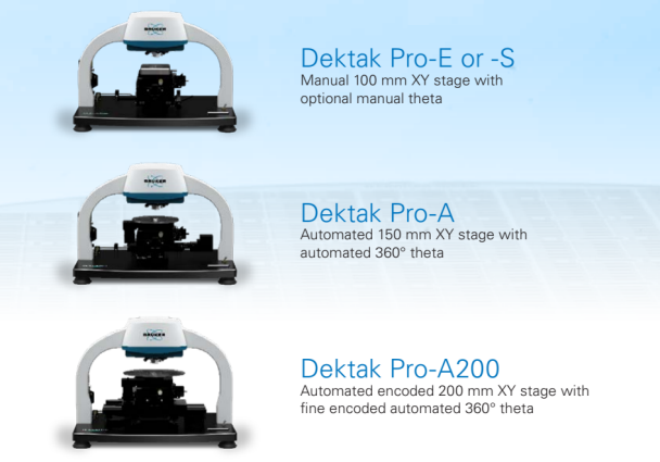- Dektak Pro A200 (德克特 Pro A200): 自動編碼的 200 mm XY 載物臺,帶有精細編碼的自動 360° θ