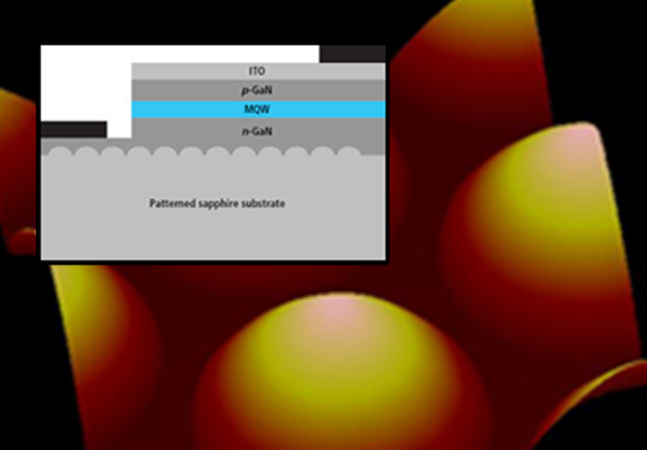 11)圖案藍(lán)寶石底板 (PSS)是LED制造商用于提高光輸出和整體設(shè)備效率的一種技術(shù)。PSS是一種藍(lán)寶石晶圓,其周期圖案已刻在其中。圖案的形狀各不相同,但以圓錐形、半球形、金字塔形或其他類似結(jié)構(gòu)為主。這些結(jié)構(gòu)可用于改變發(fā)射光子的角度,減少總內(nèi)部反射,從而提高效率。Edge-PSS AFM可提供控制PSS制程計量,包括特征高度、寬度和角度測量,同時提供完整的3D輪廓。Edge-PSS能滿足PSS供應(yīng)商和LED制造商縮小結(jié)構(gòu)尺寸、提高產(chǎn)品效率的需求。