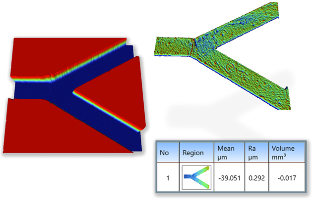 2)分析微流體器件的底部通道,通過 Vision64 的多個區域直接提取