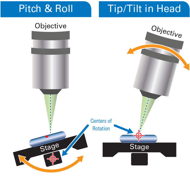 1)傳統的俯仰滾動工作臺設計需要操作人員調整五個旋轉軸,以將檢測點保持在視線上進行測量。布魯克獨特的光學頭傾斜/俯仰設計,不受傾斜影響,都能將視線保持在檢測點上,從而優化圖像采集,并大幅縮短數據獲取時間