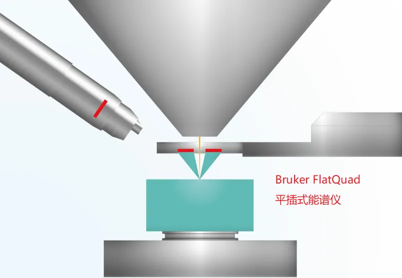 布魯克平插式能譜儀FlatQUAD空間固體角可達到>1.1sr,相同的分析條件下,平插式能譜儀的信號量可達常規能譜的幾十倍。即使在低電壓分析時,平插式能譜儀依然可獲得非常高的輸入計數率,可在幾分鐘內得到高質量的EDS分析結果。